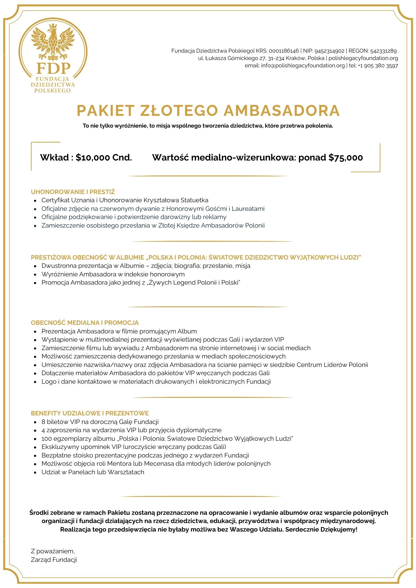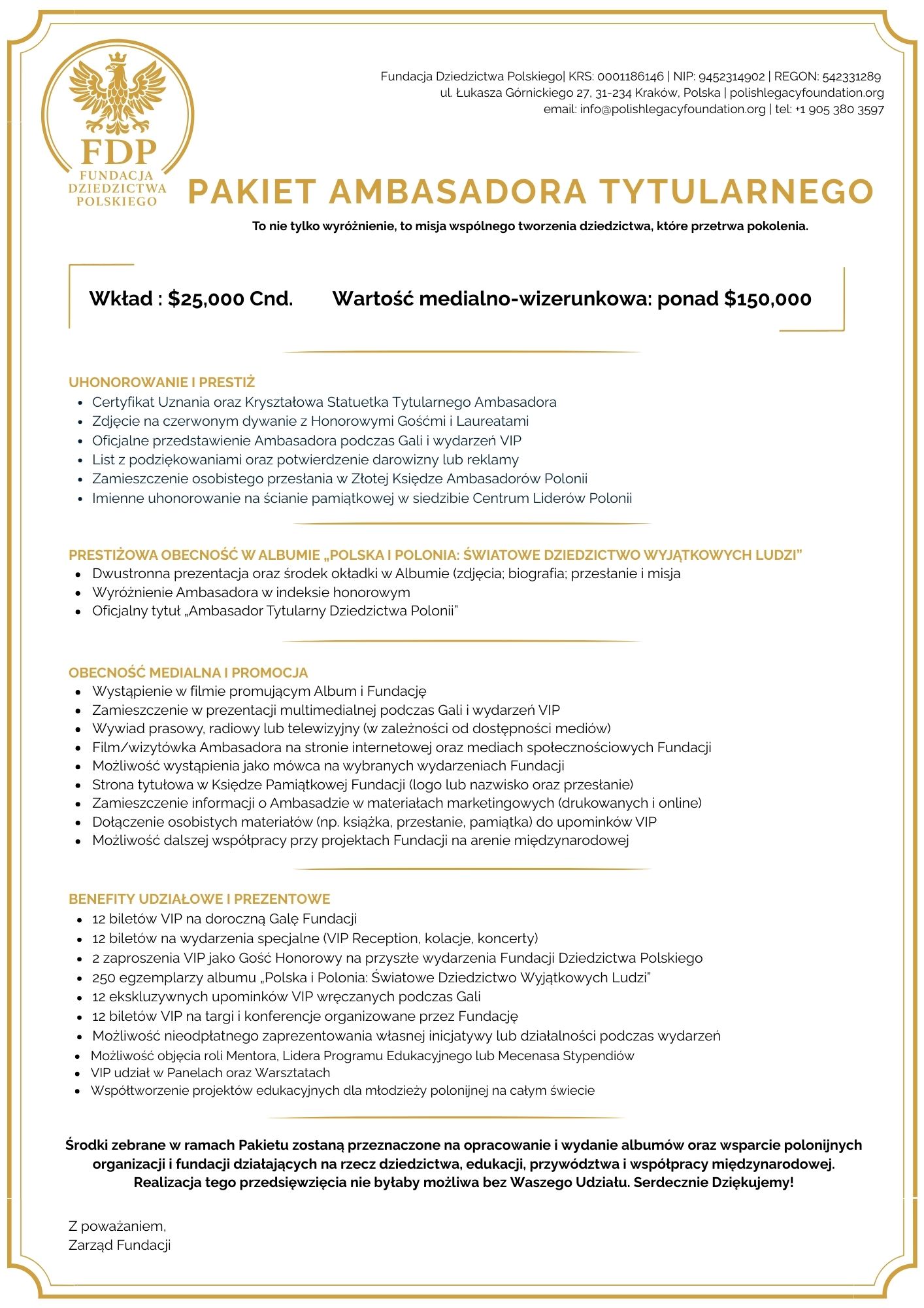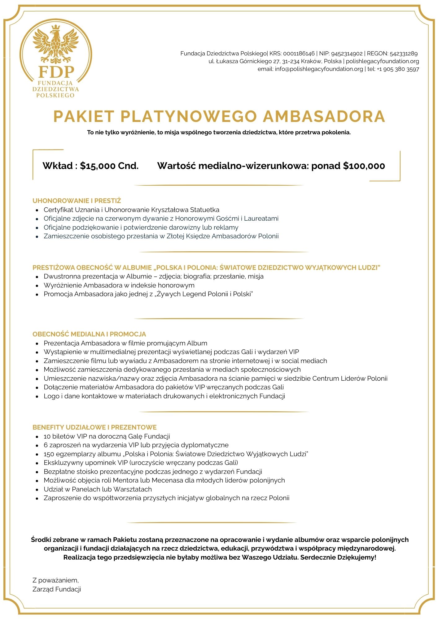 Witamy w projekcie „Polska i Polonia – Światowe Dziedzictwo Wyjątkowych Ludzi” – inicjatywie, która celebruje wyjątkowe osiągnięcia Polaków i społeczności polonijnych na całym świecie. Tworzymy prestiżowe albumy, które nie tylko dokumentują sukcesy w biznesie, sztuce, nauce i sporcie, ale także inspirują kolejne pokolenia, wzmacniają dumę narodową i pokazują globalny wpływ Polaków. Projekt wspiera rozwój 1,000 organizacji polonijnych i polskich, generując 1 miliard na inicjatywy edukacyjne, kulturalne i społeczne, budując trwałe mosty między Polską a Polonią.